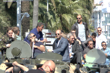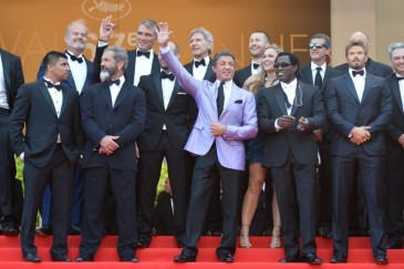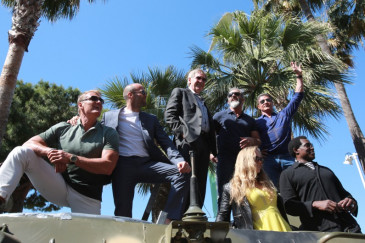 NOUS Y ETIONS - L'équipe du film "Expendables 3" a donné une conférence de presse détendue à l'hôtel Carlton de Cannes, en marge du festival. Les acteurs principaux sont arrivés en tank sur la Croisette.