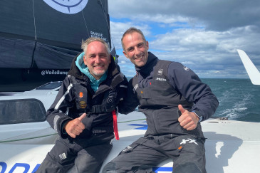 À l’occasion d’une sortie en mer sur son maxi-trimaran Banque Populaire, Armel le Cléac’h a embarqué l’ancien pilote de Formule 1 Franck Montagny pour un partage de connaissances et de sensations. Le voilier participera à la prochaine Transat...