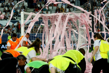 La rencontre de Ligue 2 entre Bordeaux et Rodez a été définitivement interrompue. Un joueur ruthénois a été frappé par un intrus entré sur la pelouse et a subi une commotion cérébrale, selon l'arbitre du match.