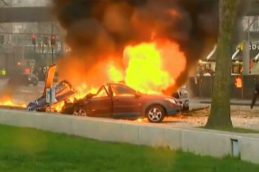 VIDÉO ZAPPEUR - Un amateur a filmé les lieux où les deux hélicoptères sont entrés en collision, peu après l'accident qui a causé la mort de 10 personnes dont 8 Français, lundi 9 mars, dans la province argentine de la Rioja.