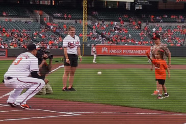Hailey Dawson, cinq ans, possède une prothèse à la place de la main droite. Le 17 août 2015, elle a donné le coup d'envoi de la rencontre de baseball qui opposait les Baltimore Orioles aux Oakland Athletics.