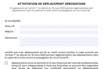À partir de mardi 12h00, les déplacements sont réduits au strict minimum. Certaines exceptions sont autorisées, à condition d'être en possession d'une attestation sur l'honneur justifiant la nécessité de votre déplacement.