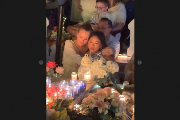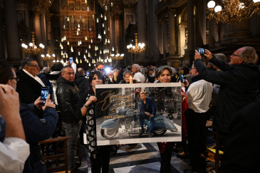 La veuve du rockeur a participé à la présentation, dans le IXᵉ arrondissement de la capitale, d'une plaque commémorative. Elle est installée au pied de l'immeuble où la star a grandi.