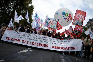 REPLAY - Le SNALC manifeste sa colère après l'annonce de la publication au Journal Officiel du projet de réforme mené par Najat Vallaud-Belkacem, au lendemain d'un mouvement de grève partiellement suivi par le corps enseignant.