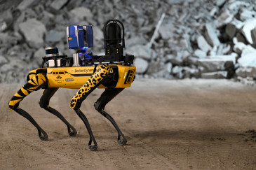 Scar, un des "chiens robots" Spot de Boston Dynamique est un drôle d'animal jaune et noir. Il est utilisé par les étudiants de l'école des Mines de Nancy et va notamment permettre d'approcher des endroits dangereux à la place de l'homme.