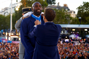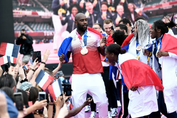 Après le titre conquis sur le Champ de Mars, face à la tour Eiffel, Teddy Riner et toute l'équipe de France championne olympique de judo ont traversé Paris du Sud au Nord pour être fêtés samedi 3 août par des milliers de personnes au Club France...