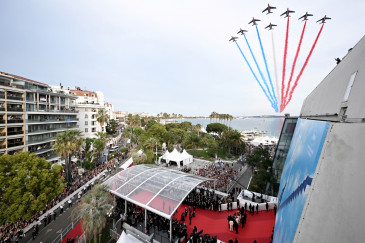 À l'affiche du film "Top Gun : Maverick", Tom Cruise a fait sensation sur le tapis rouge mercredi. Après une arrivée en hélicoptère, la présentation de son film était accompagnée par les avions de la Patrouille de France.