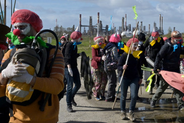 Ce samedi 23 mars, des dizaines de militants de l'association Extinction Rebellion ont investi le site de la raffinerie Total de Donges, en Loire-Atlantique, pour dénoncer les "clowneries" du géant pétrolier.