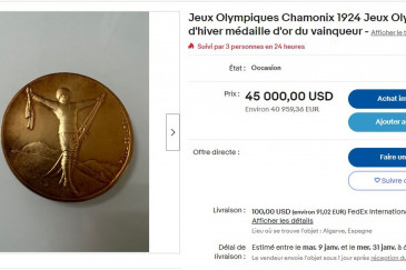 Une médaille d'or des premiers Jeux olympiques d'hiver, à Chamonix en 1924, est mise aux enchères sur la plateforme en ligne eBay. La vendeuse assure qu'il n'existe que 33 exemplaires de cette pièce. Elle revend également d'autres médailles de...